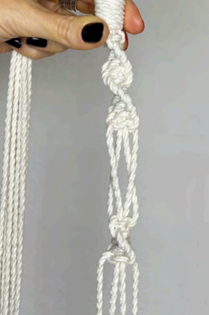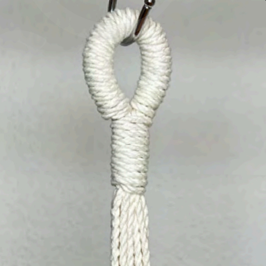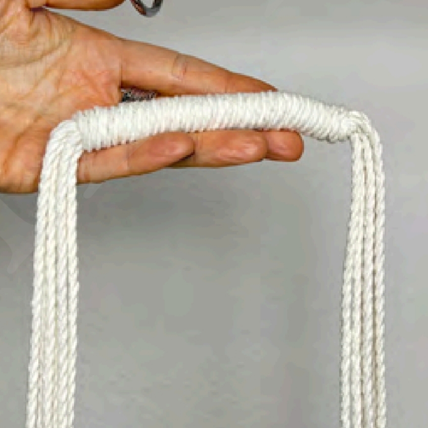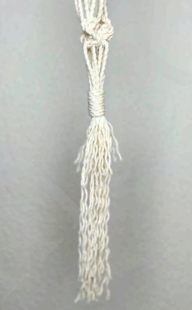 Der Wickelknoten dient dazu, mehrere Fäden sauber zusammenzufassen, z. B. am Ende eines Makramees oder bei Pflanzenampeln.