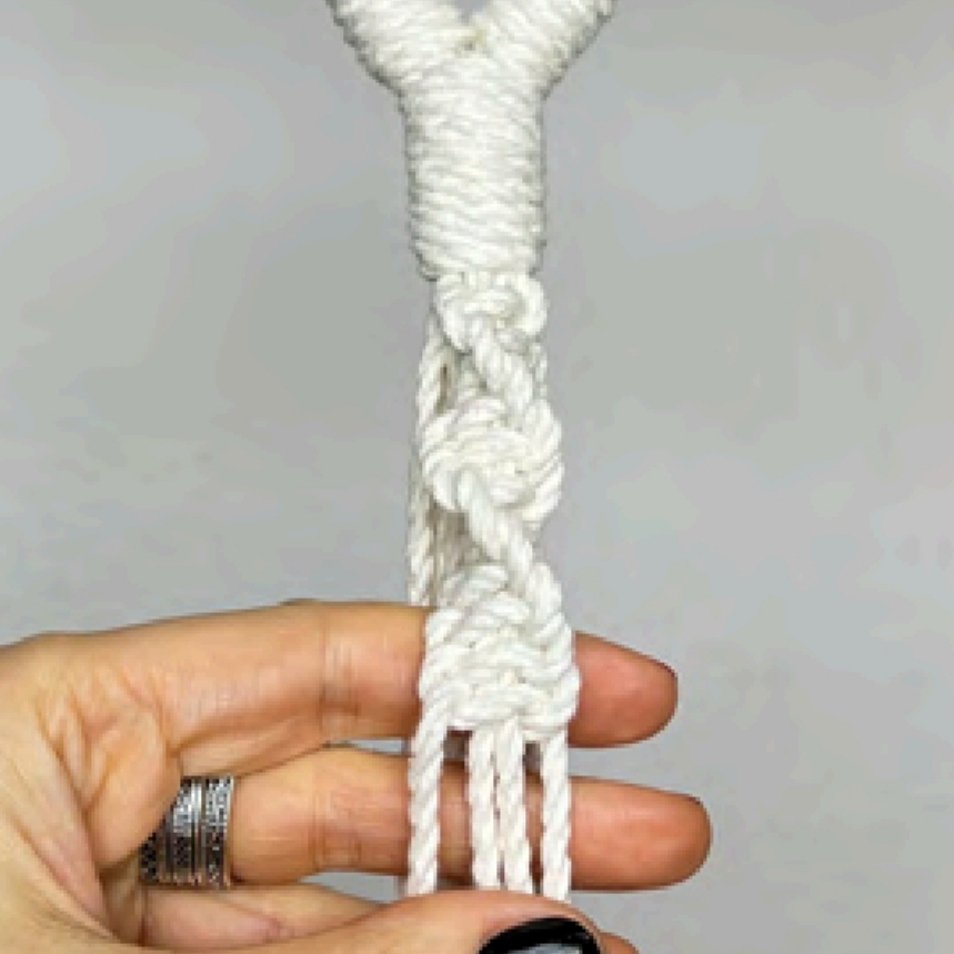 - Lege die beiden mittleren Fäden gerade nach unten – sie werden nicht geknotet.