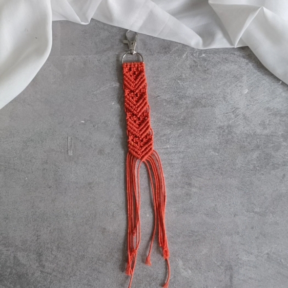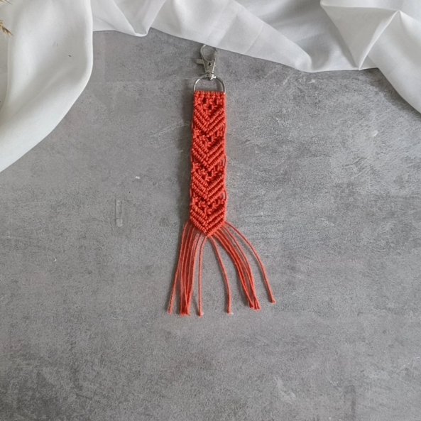 Faden 12 straff nach links unten halten. Mit Fäden 11-6 Rippenknoten um diesen herum knoten.