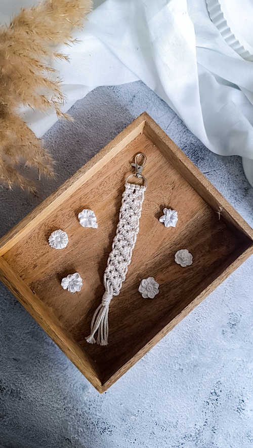 Herzlichen Glückwunsch — dein Makramee-Schlüsselanhänger ist fertig! Du hast jetzt ein praktisches und zugleich stylisches DIY-Projekt abgeschlossen, das so nur du gestalten kannst. Ob du es selbst nutzt oder verschenkt: Dieses kleine Makramee-Werk zeigt, wie viel Kreativität in wenigen Knoten stecken kann. Wenn dir die Anleitung gefallen hat, dann schau dich gern auf meinem Blog nach weiteren Makramee-Projekten um und lass dich inspirieren. Viel Freude beim Knüpfen deiner nächsten DIY-Idee! ✂️💕