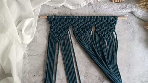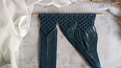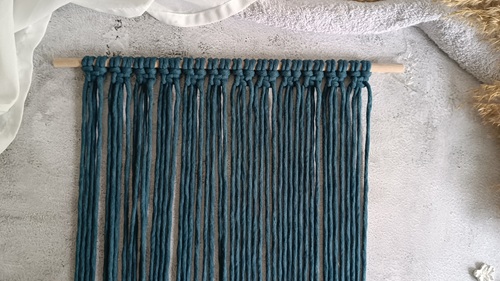Du kannst deinen Wandbehang ganz nach deinem Geschmack variieren – zum Beispiel mit Holzperlen, verschiedenen Garnfarben oder unterschiedlichen Fransenlängen. So wird jedes Makramee-Projekt zu einem echten Unikat.