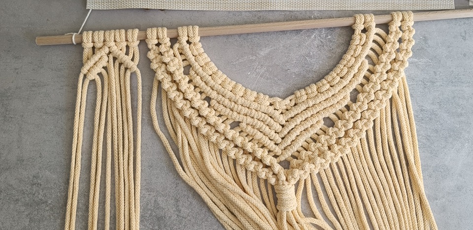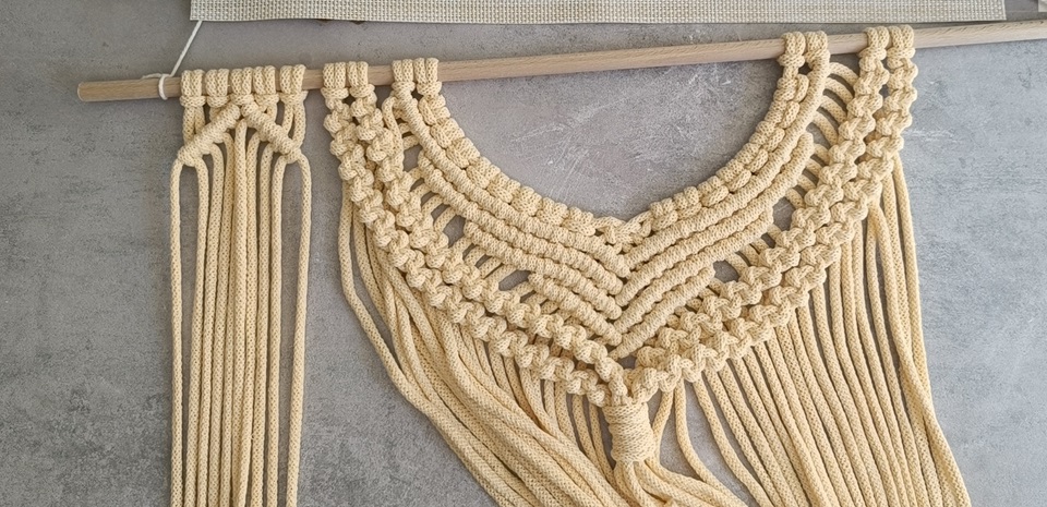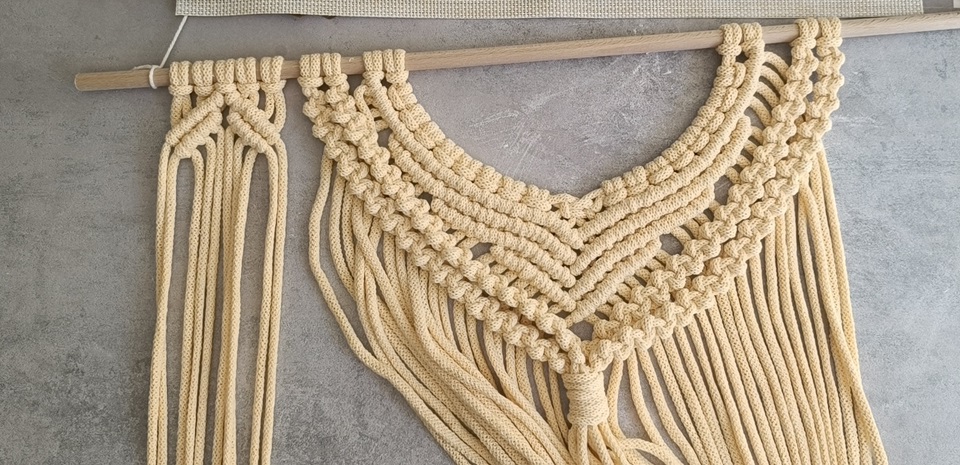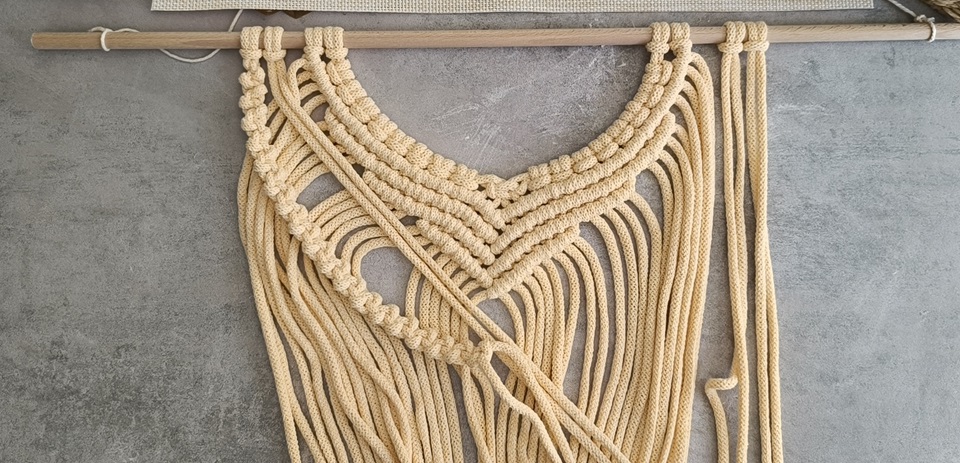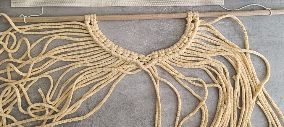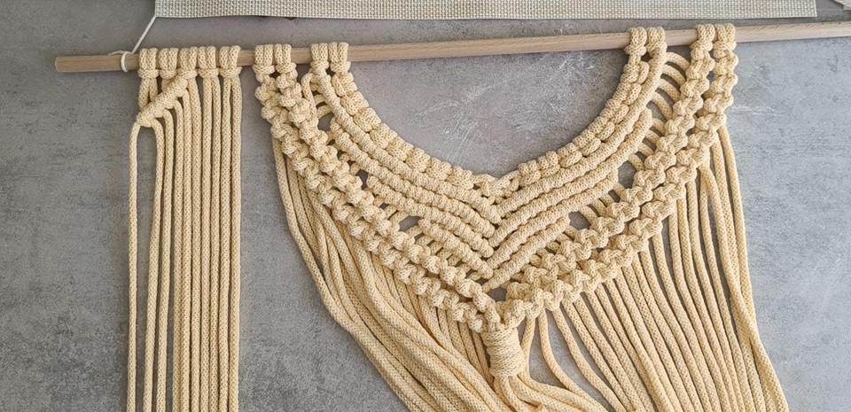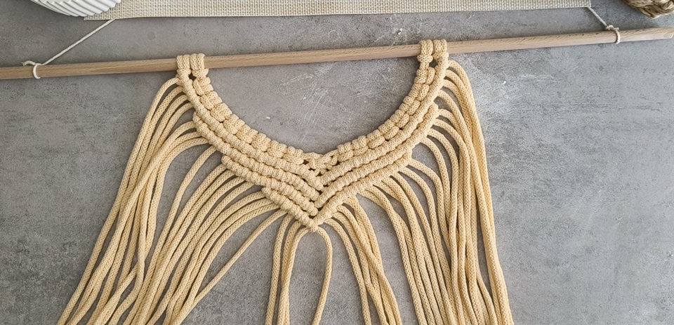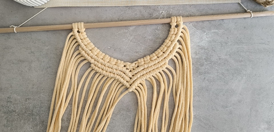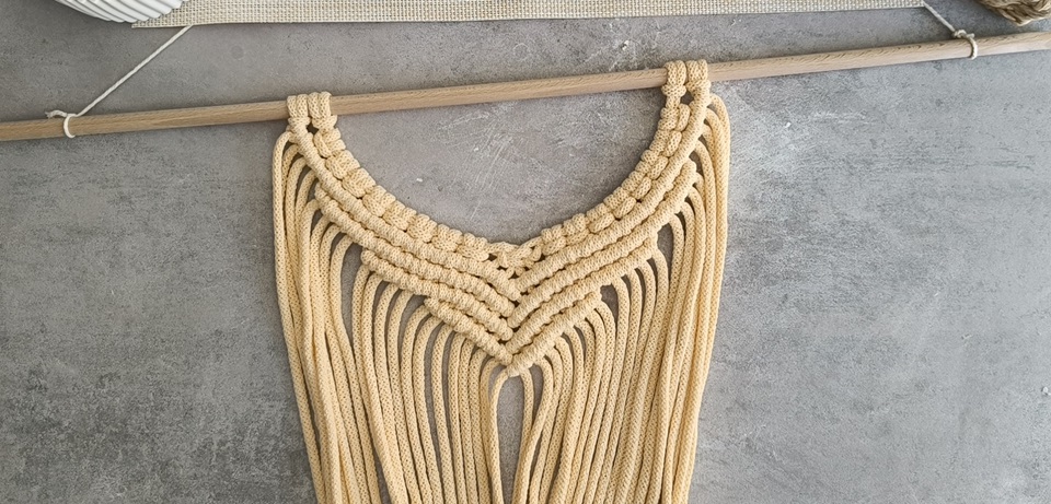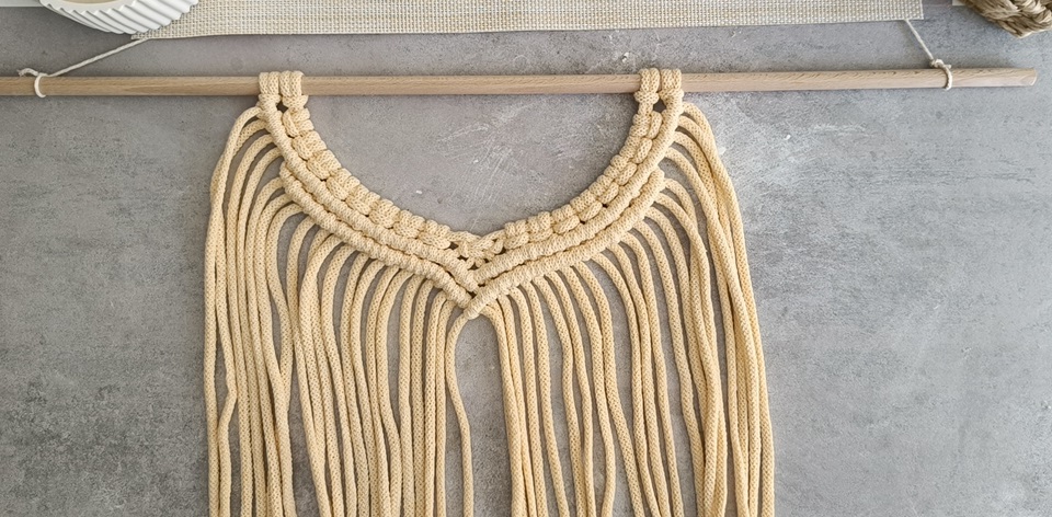 Das Makramee in V- oder U-Form zurecht schneiden.