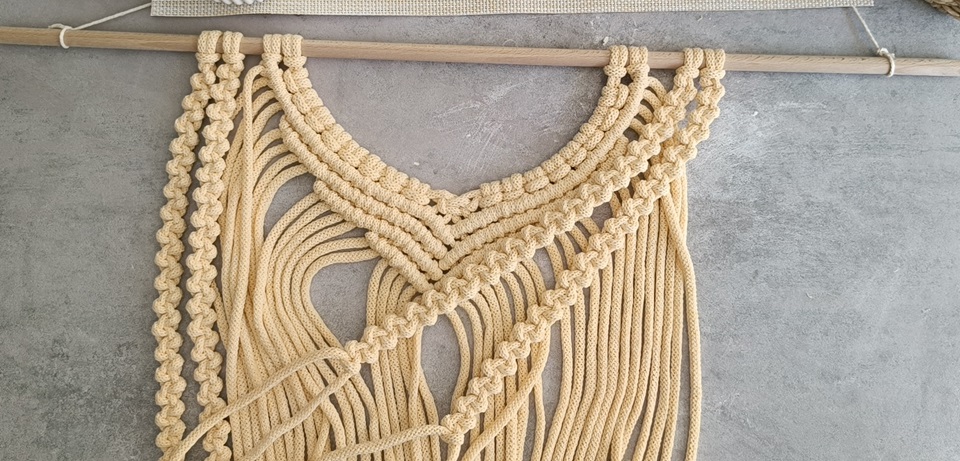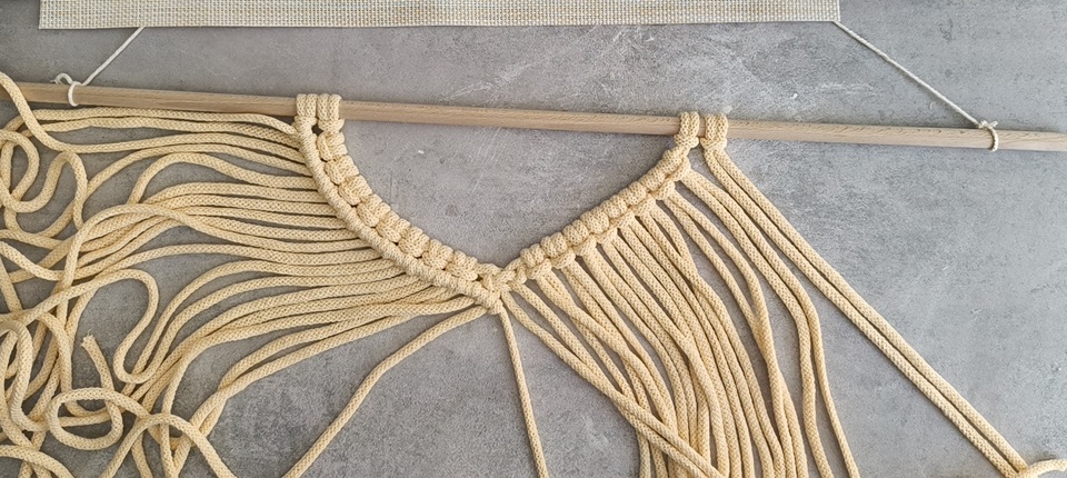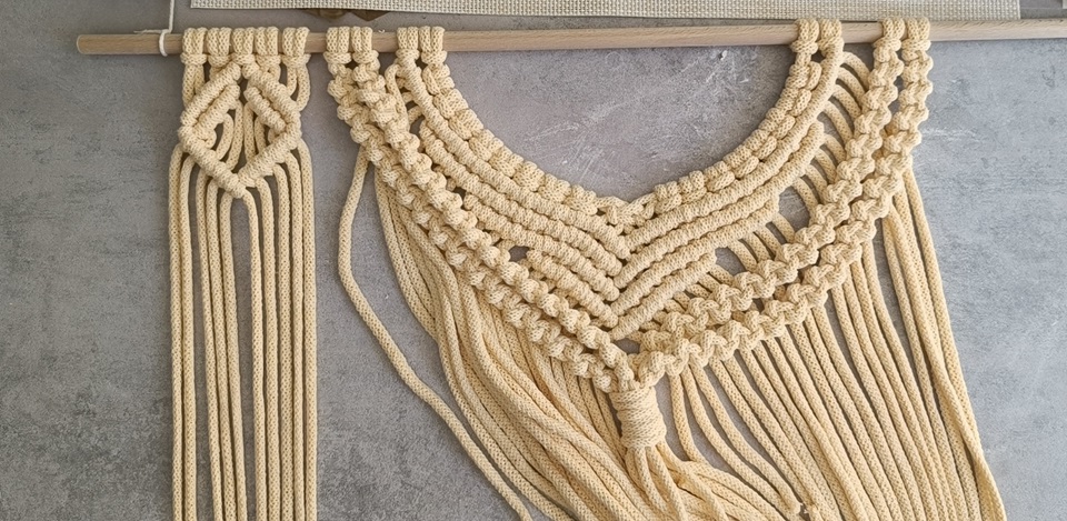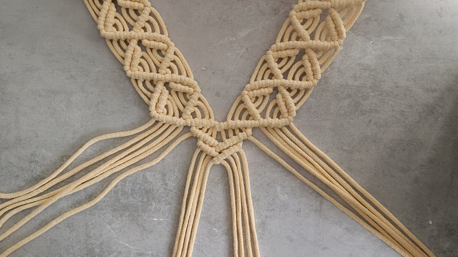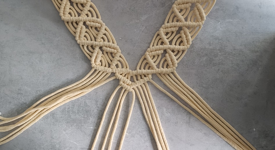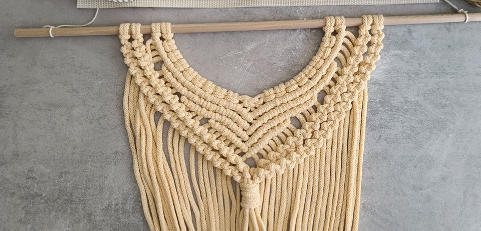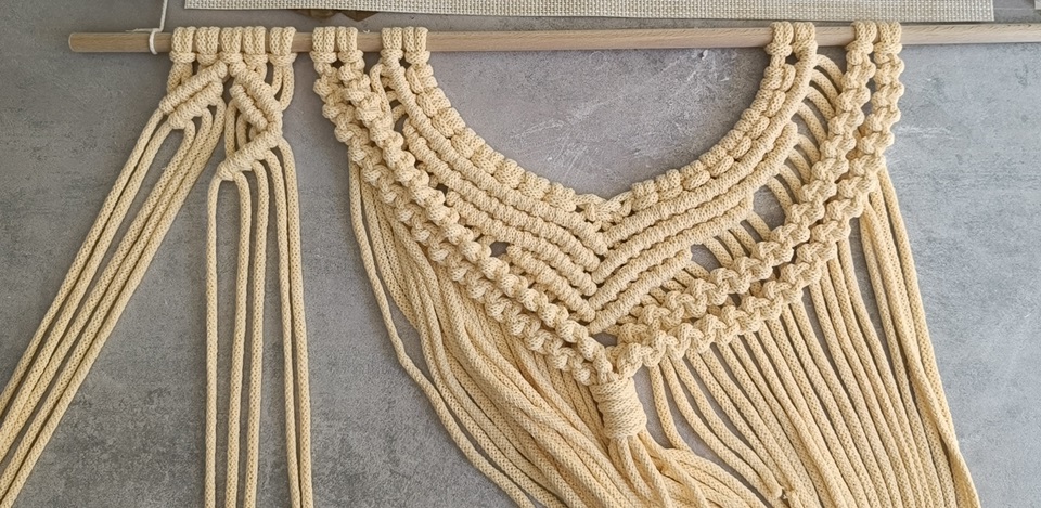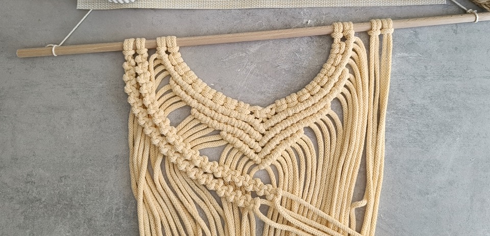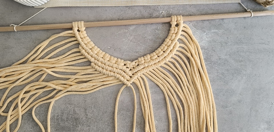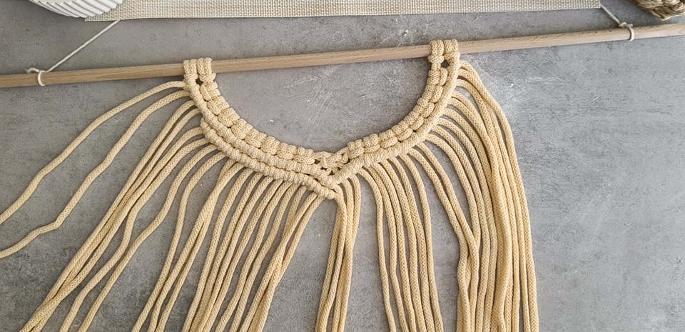 Das Makramee in V- oder U-Form zurecht schneiden.