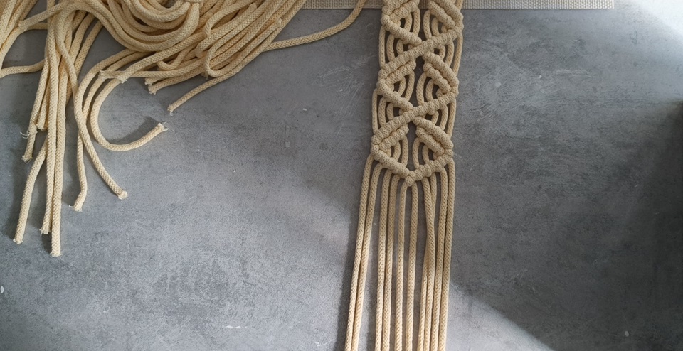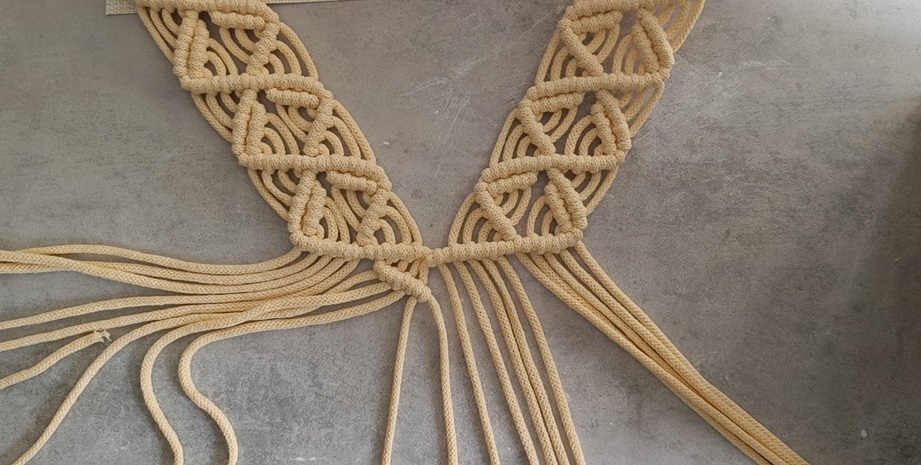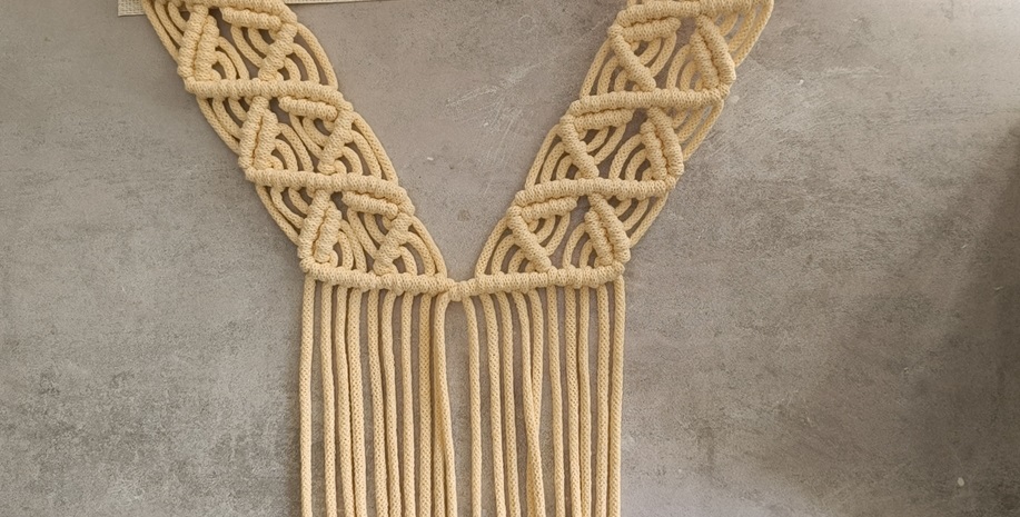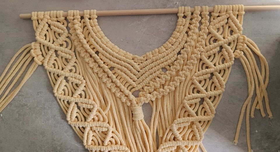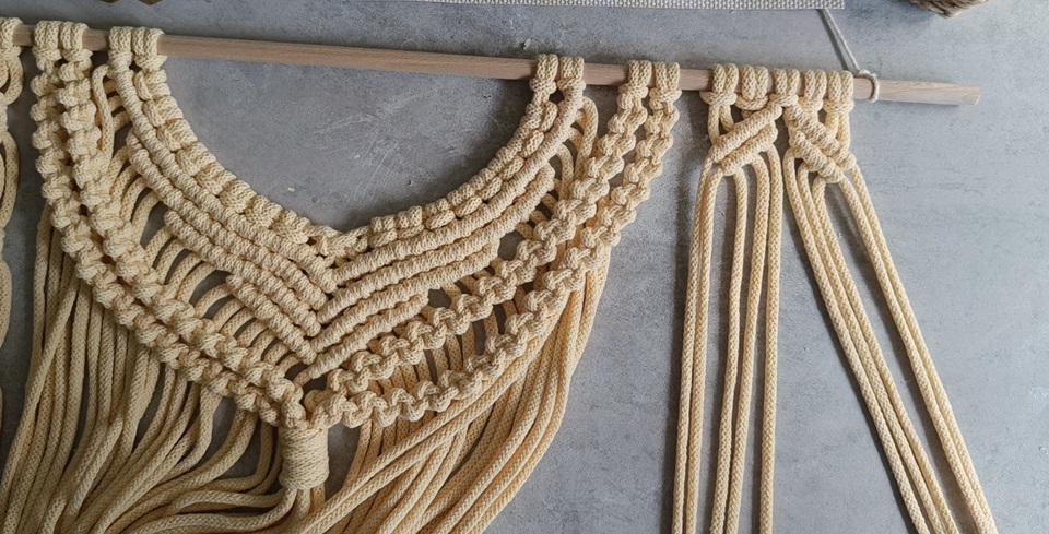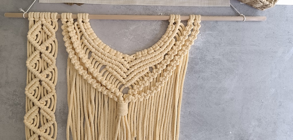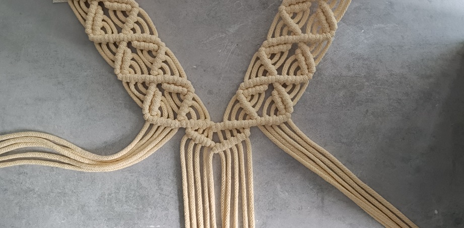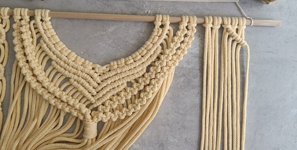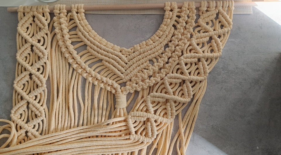 Das Makramee in V- oder U-Form zurecht schneiden.